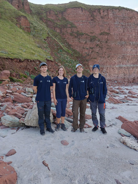 Das Freiwilligen-Team 2025/2026 auf Helgoland (v.l.n.r.): Tristan Licht (BFD), Luisa Höppner (BFD), Fabian Tams-Detlefsen (FÖJ) und Tjark Oberesch (BFD).