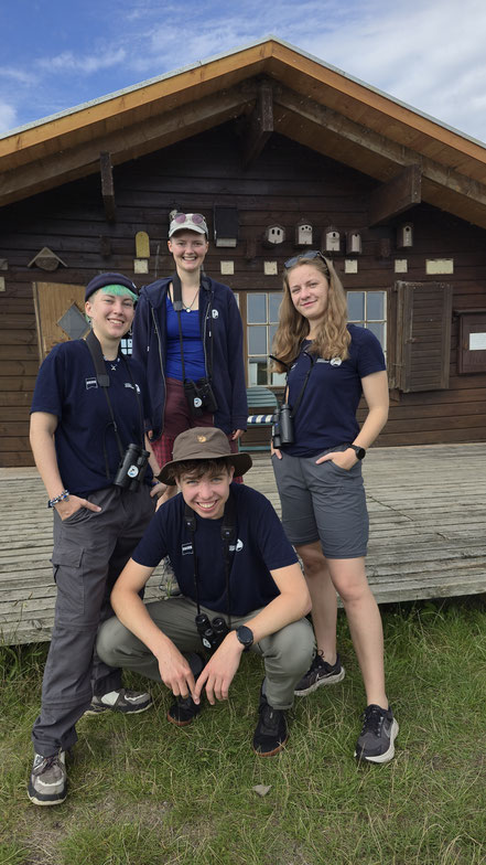 Das Freiwilligen-Team 2025/2026 v.l.n.r.: Leyan Jansen (FÖJ), (vorn) Jonathan Soethe (FÖJ), (hinten) Lilli Sanne (Praktikum), Elisabeth Jensen (BFD).